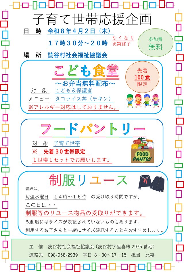 子育て世帯応援企画(こども食堂・子育て世帯フードパントリー)